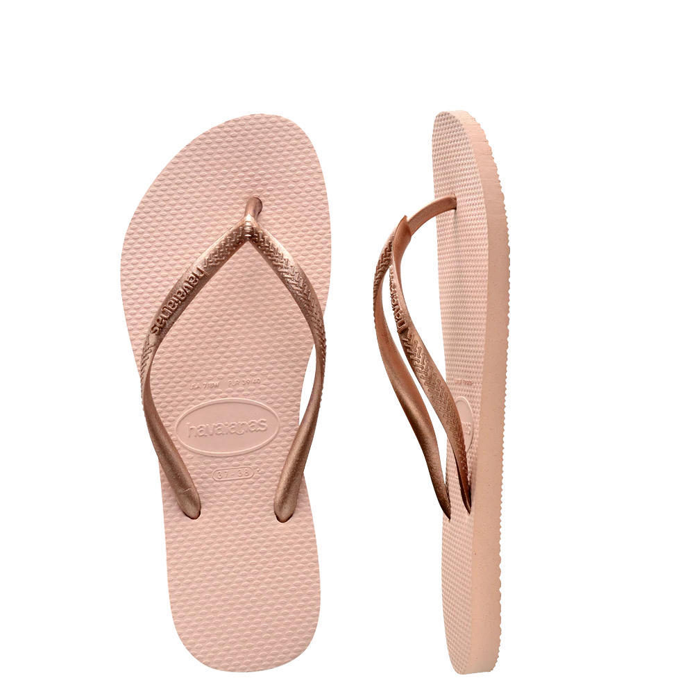 Havaianas Kids Slim - Our classic everyday style! Featuring a skinny metallic strap and bouncy, durable plain rubber sole.