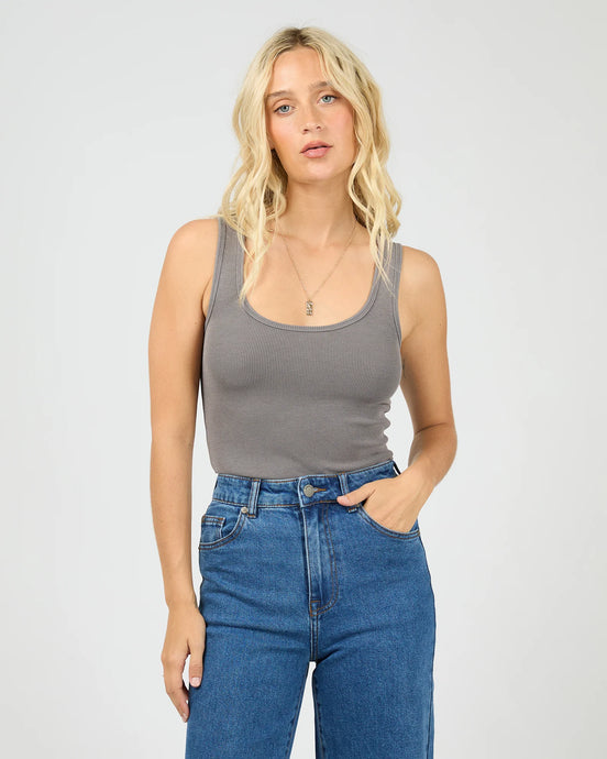 WASHED RIB SCOOP NECK TANK - CHARCOAL